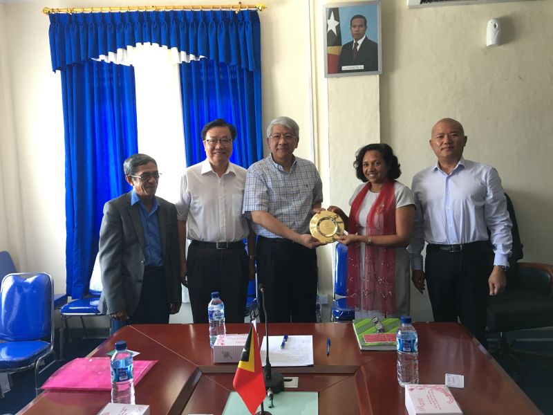 為推動澳門與東帝汶兩地的經濟及文化合作交流,我校校董會主席、立法會議員陳明金於9月27日至29日率領校董會副主席顏澤賢及校長張曙光一行到訪東帝汶帝力市,受到了當地政府和高等教育機構的熱情接待。