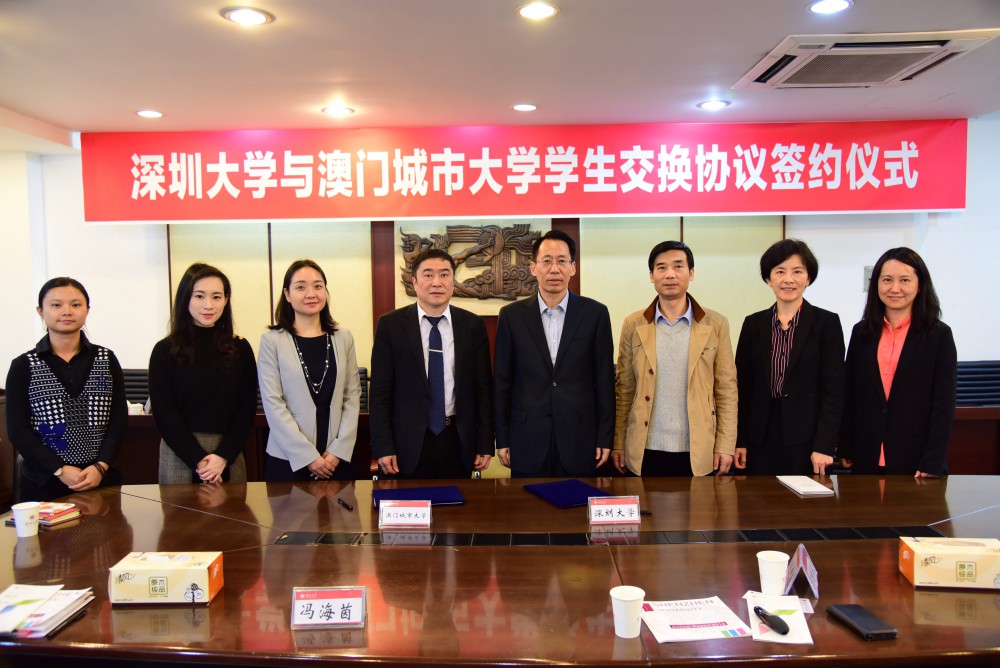 3月7日下午,李教務長一行來到深圳大學,受到深大杜宏彪副校長、師範學院學院李臣副院長、港澳臺事務辦公室韓水仙主任及候強副主任等代表的熱情接待。我校於2017年與深大簽署了學術交流協議,此次訪問,兩校就圍繞《粵港澳大灣區發展規劃綱要》開展交流合作進行更深入的討論,重點探討了學生交換、中葡研究生聯合學院、大數據研究合作項目、訪問學者等重要合作議題。隨後,李樹英教務長代表張曙光校長與深大簽署了學生交換協議。會後,李教務長還應邀為深圳大學師範學院師生做了一場別開生面的人文科學研究方法學術報告。
