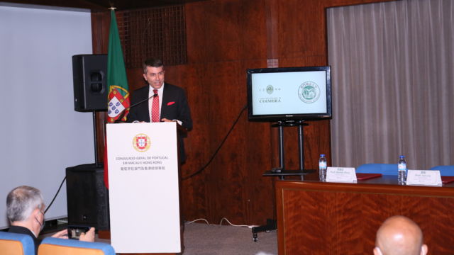 葡萄牙駐港澳總領事歐冠溢在致辭中表示,中國歷來與葡語國家保持著友好且密切的聯繫,在文化、創意產業及教育方面持續開展合作。隨著《橫琴粵澳深度合作區建設總體方案》的出台,也為澳門作為中國與葡語國家聯繫的平台帶來新的機遇。今日非常高興見證科英布拉大學與城大的合作,並預祝合作備忘錄簽署儀式成功,期待未來開展更多合作。