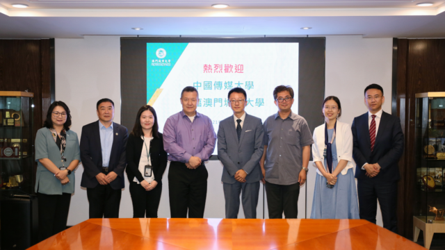 中國傳媒大學校長助理、黨委宣傳部部長楊懿率團今天到訪澳門城市大學,獲劉駿校長熱情接待。雙方圍繞智能媒體、國際化等共融共通的學科領域展望未來合作,並簽署了合作協議。