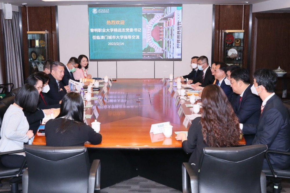 會上,劉駿校長向楊遠志書記一行的到來表示熱烈的歡迎,簡介了城大的歷史沿革、發展概況及未來的發展方向。城大歷史悠久,以社會經濟發展和產業需求為導向,為澳門、大灣區和國家培養應用型、實務型的高端人才,並將人才培養和科研成果切實服務社會和產業發展。楊遠志黨委書記簡介了黎明職業大學的歷史變遷、文化底蘊和辦學成果,黎明職業大學因應福建省和泉州市的產業需求開設課程,培養出大批高素質的技術人才。
