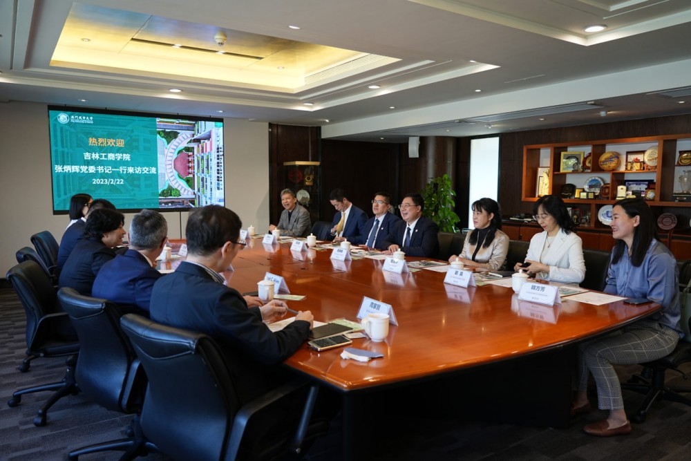 孔繁清副校長歡迎張炳輝書記一行的到來,並向來賓簡介了城大的發展概況、辦學成果和未來發展方向。張炳輝書記介紹了吉林工商學院的辦學特色和優勢學科。雙方就未來合作方向進行討論,期望在學科建設上互相學習、優勢互補,共同開展人才培養計劃和師資培訓項目,推動兩校創新發展。