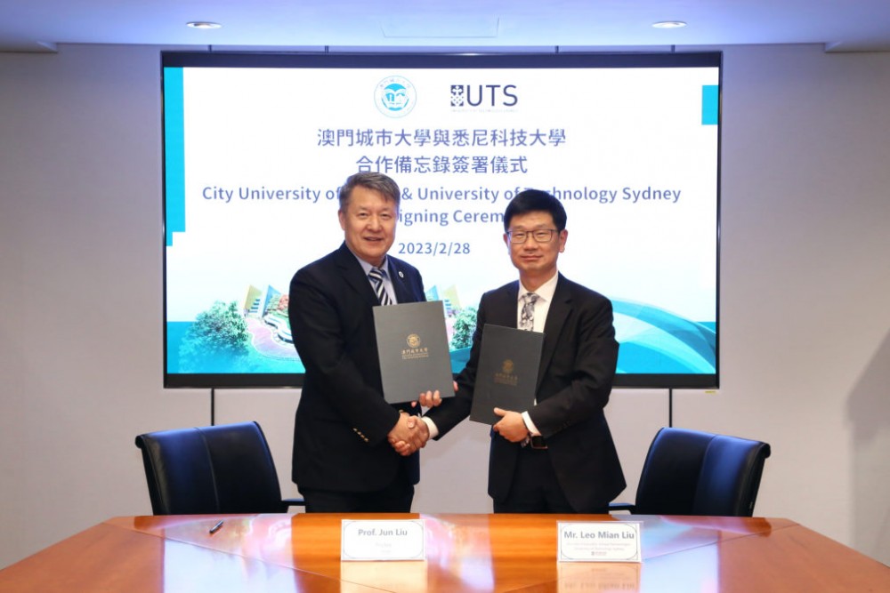 悉尼科技大學副校長劉勉、張成奇今天來訪澳門城市大學,獲校長劉駿、副校長兼數據科學學院院長周萬雷、副校長程志翔的熱情接待。雙方簽署了合作備忘錄,推動聯合開設課程及人才培養,加強國際交流,提升國際視野。