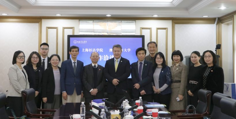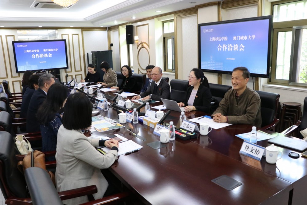 澳門城市大學校長劉駿率代表團今天拜訪上海杉達學院,獲校長陳以一的熱情接待。代表團參觀了信息科學與技術學院、勝祥商學院、國際醫學技術學院以及藝術設計與傳媒學院,雙方圍繞學科發展、課程合作、師生交流、培訓等開展座談。上海杉達學院副校長潘慧斌,城大副校長程志翔陪同出席會面。