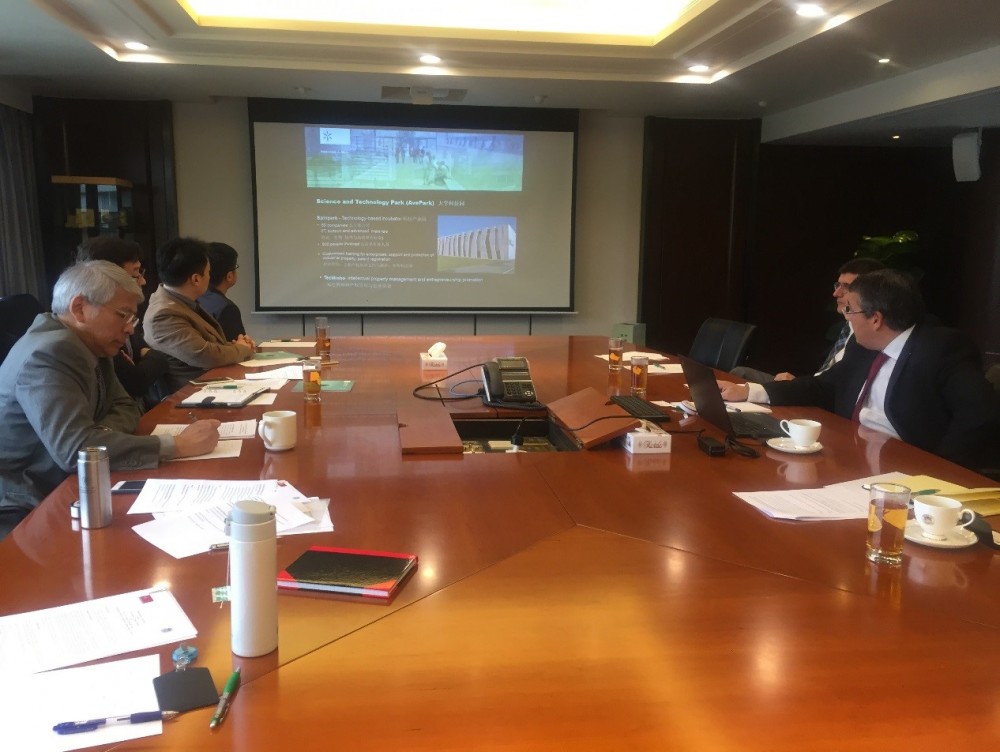 米尼奧大學成立於1973年,是葡萄牙一所擁有11個院系的綜合性院校,並於1991開設了“中國語言文化公開課”。2009年,該校設立了中葡跨文化研究碩士課程,成為葡萄牙唯一一所開設與中文有關的碩士專業的大學。Antonio Cunha校長全面介紹了米尼奧大學的發展概況,並展示了其與多家知名集團合作的科研項目。會議上,雙方就之前建立的多個合作項目逐一討論跟進,進一步落實合作內容。