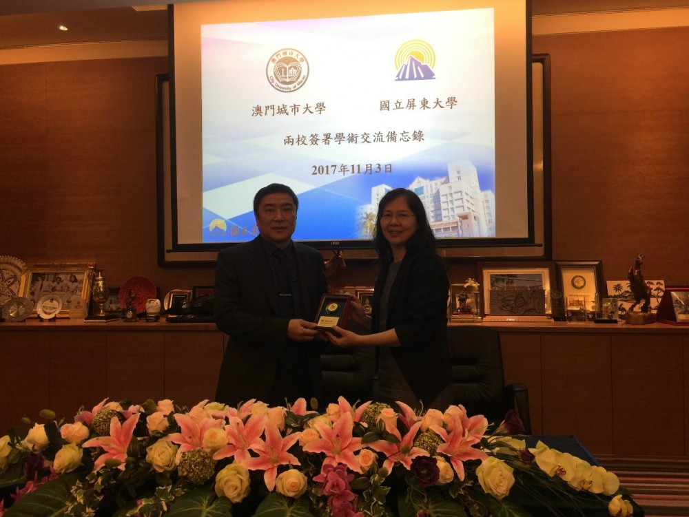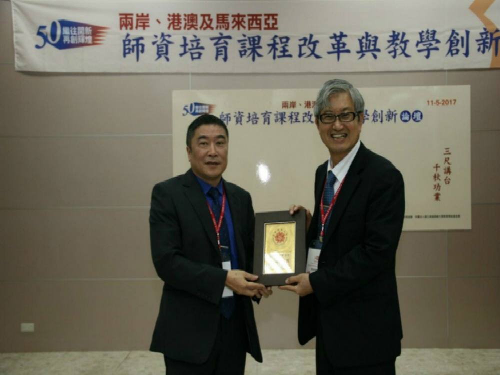 11月4-6日,我校教務長、教育學院院長李樹英與澳門教育發展研究所副所長李嵩義應邀出席姐妹合作院校台灣高雄師範大學建校五十週年校慶活動。李樹英教務長代表我校,為高雄師範大學贈送了紀念品。